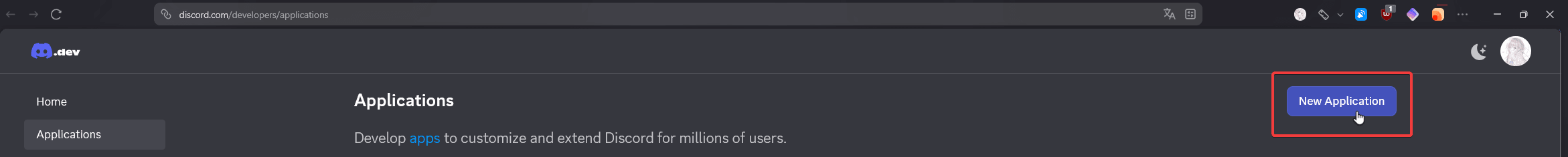 Go to Discord's Developer Portal, and create an application.